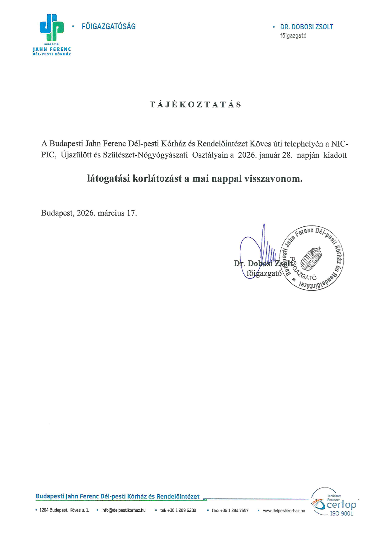 2024. február 21. napjától a korábbi 06-1-920-1400 telefonszám helyett a 06-1-289-6222 telefonszámon tudják elérni az előjegyzéssel foglalkozó kollégáinkat.